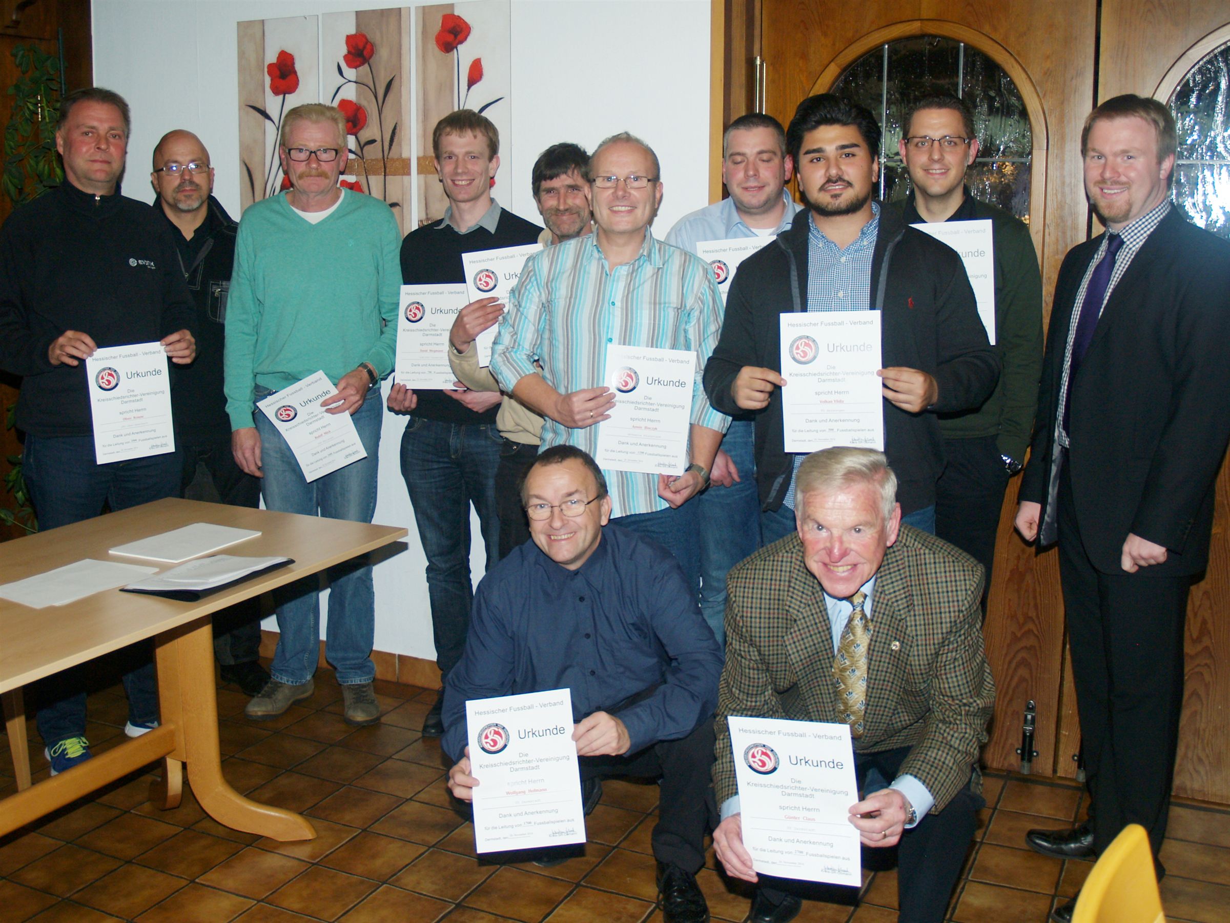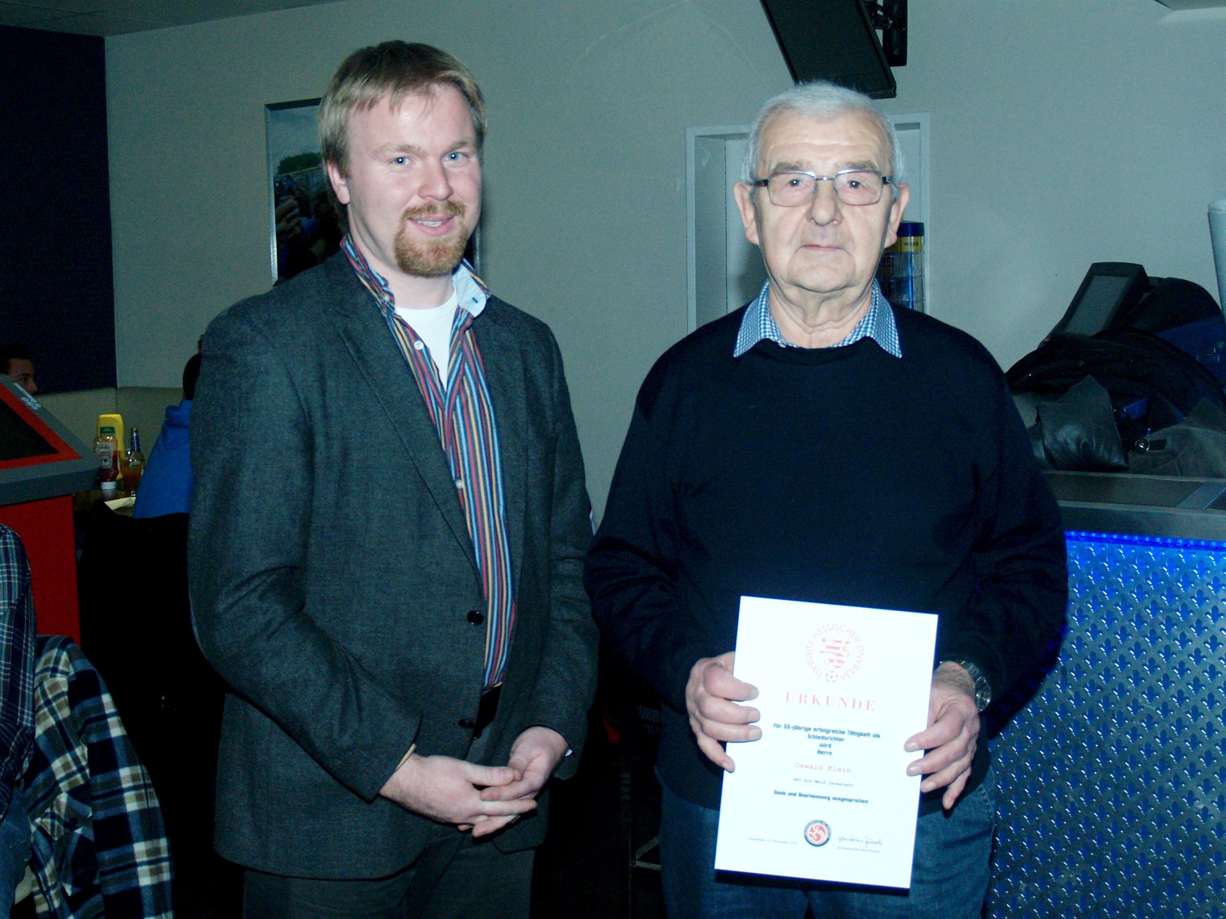 Zuletzt aber danke ich euch allen, die ihr heute Abend eine Ehrung erfahrt, dafür, dass ihr dem Schiedsrichter-Wesen seit so vielen Jahren die Treue haltet,